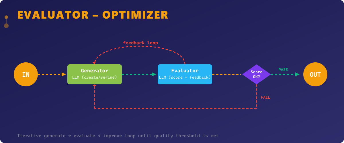 asyncio.run(main())This Evaluator-Optimizer implementation features a structured evaluation criteria system, score parsing, best-output tracking across iterations, and a complete optimization history for observability.