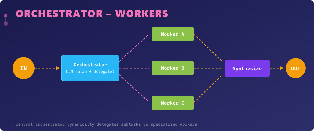 - Design for failure — every pattern needs graceful degradation. What happens when a worker fails? When the evaluator disagrees with itself? When the router misclassifies?