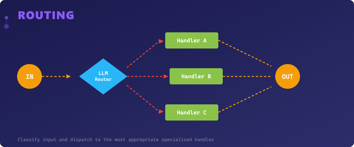 Implements the Routing pattern — classifies input and dispatches