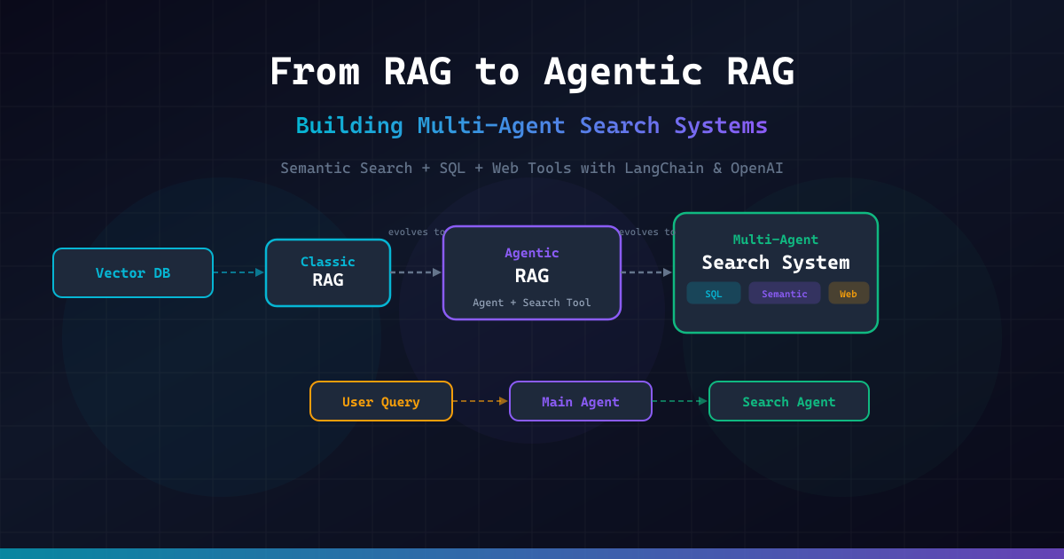 - Agentic RAG — giving an AI agent a semantic search tool so it can decide when and what to retrieve, with the ability to reformulate queries